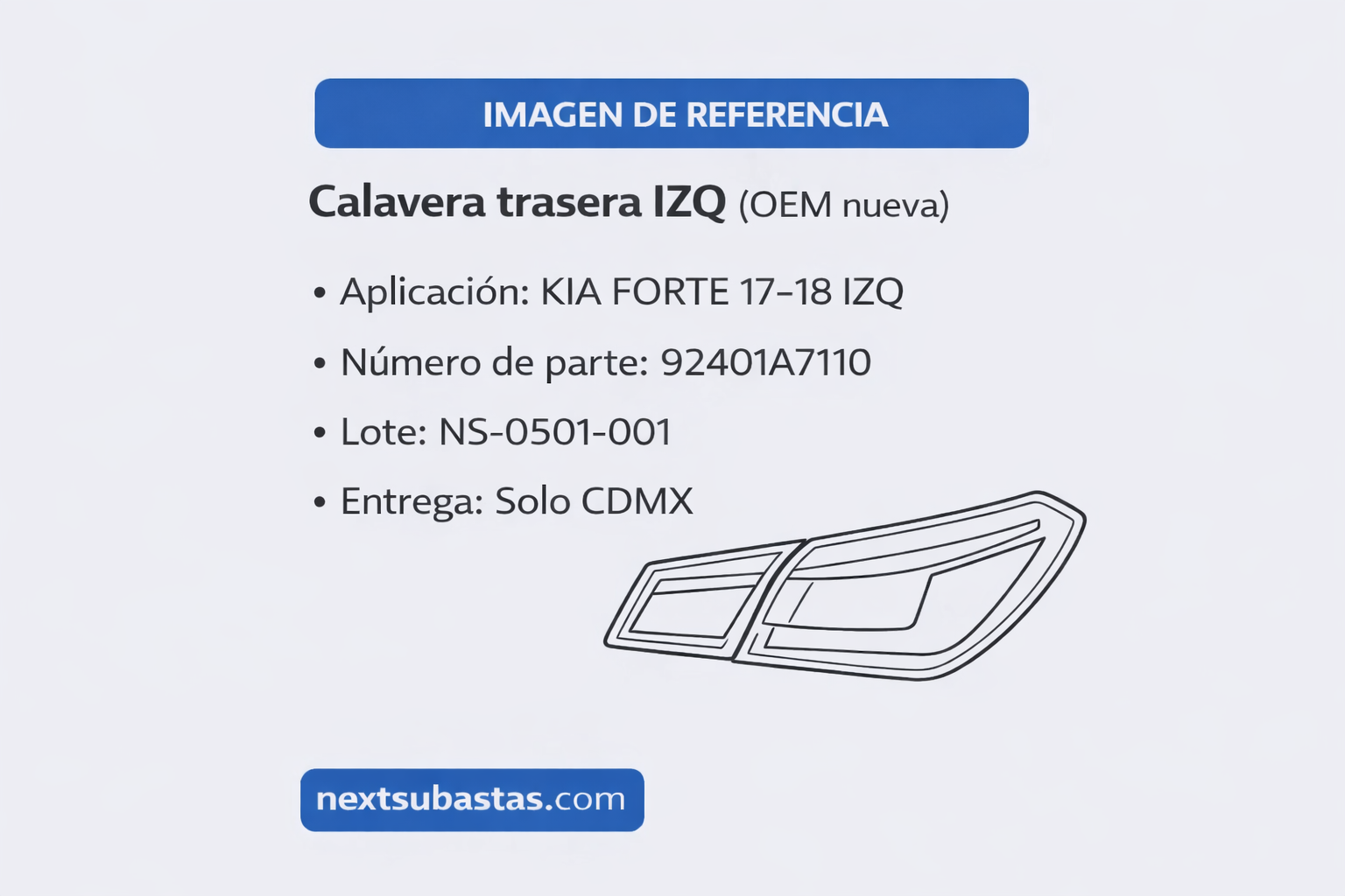 Nota: La posición exacta (cajuela/salpicadera) debe validarse por Número de parte antes de ofertar o usar “Cómpralo ahora”.