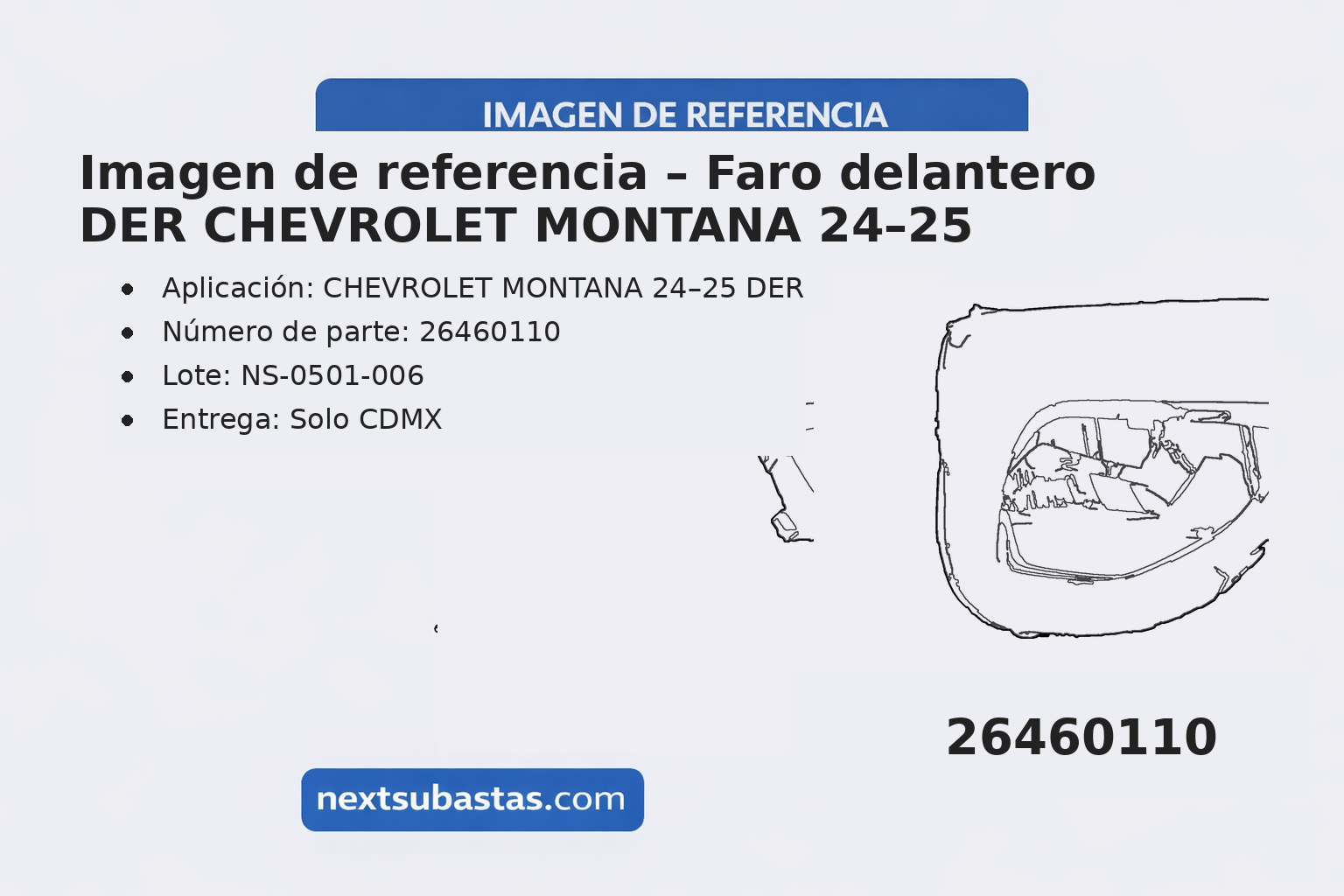 - Pieza: Faro delantero DER (OEM nueva)