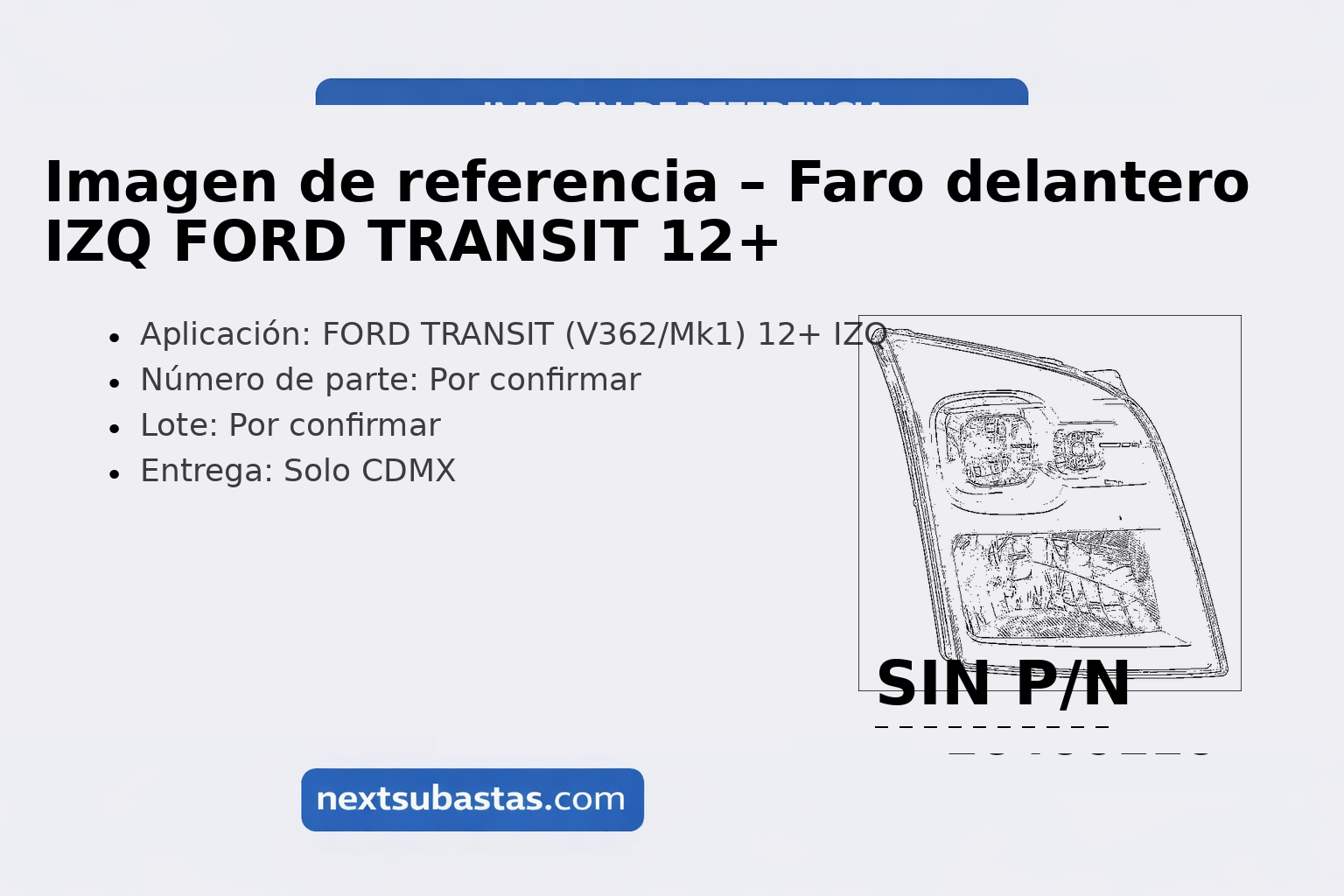 Entrega solo en CDMX, conforme a las condiciones de la subasta y la logística definida para el lote.