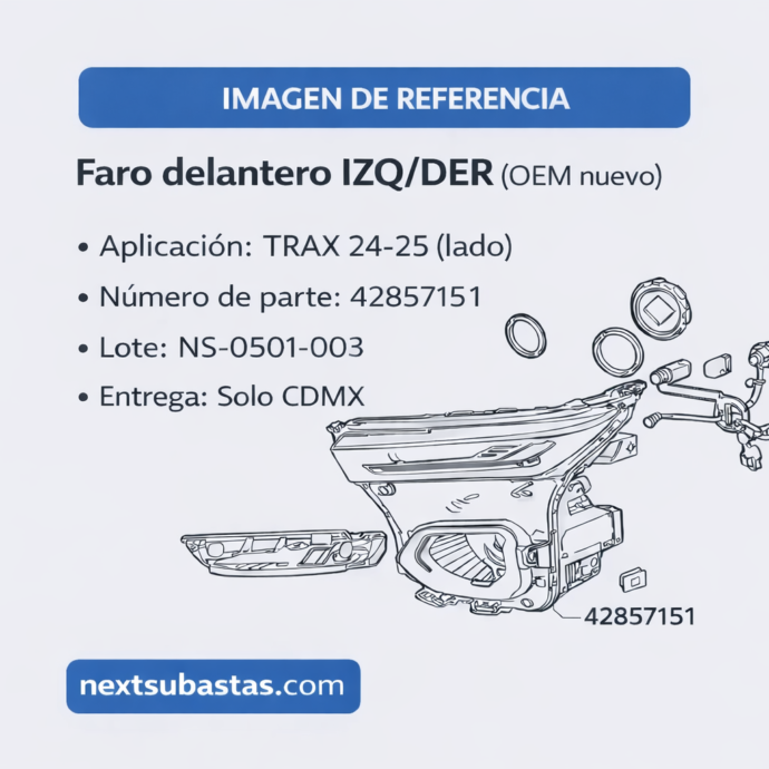 Entrega solo en CDMX, conforme a las condiciones de la subasta y la logística definida para el lote.