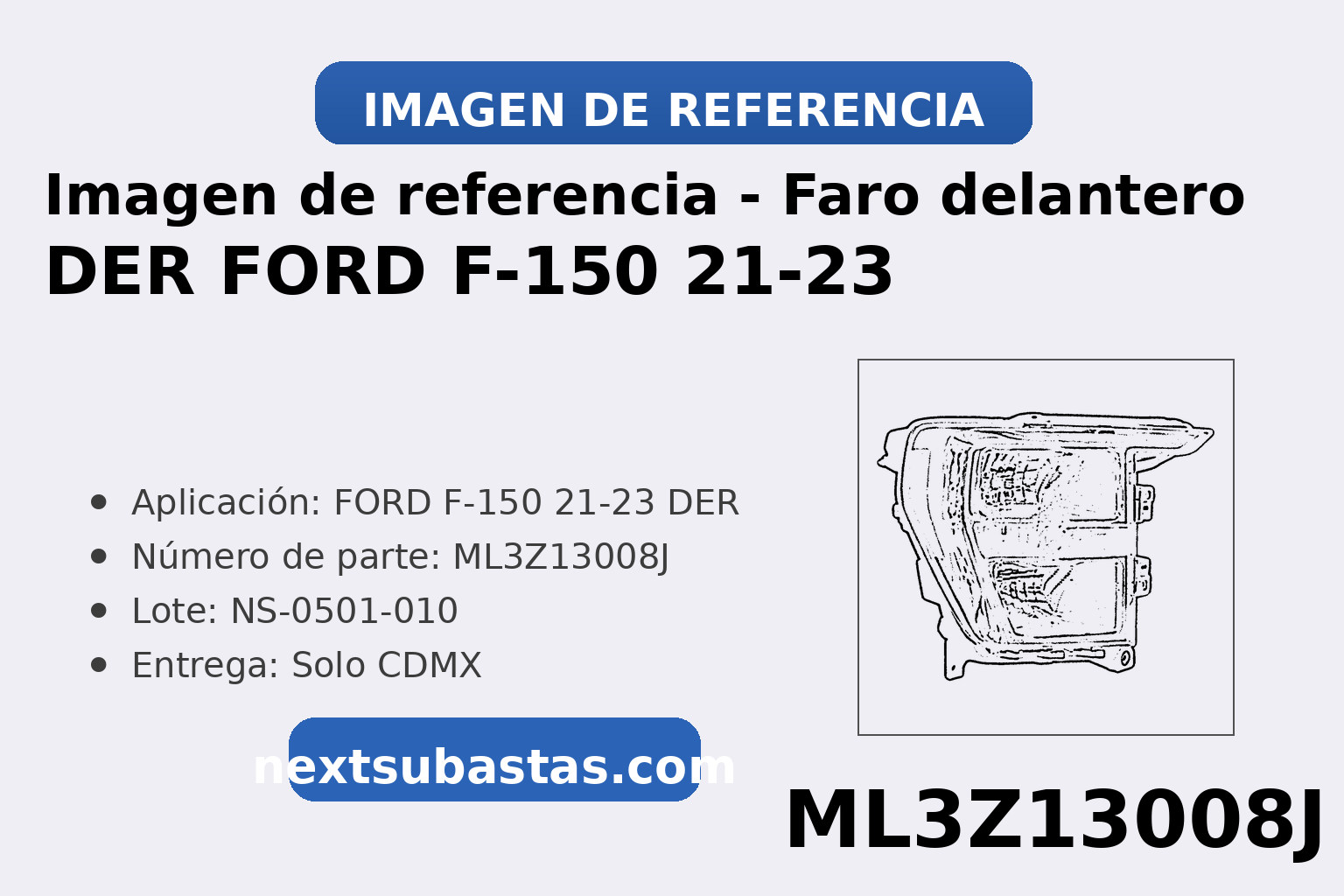 Faro delantero principal DER OEM nuevo – FORD F-150 2021–2023 – Número de parte ML3Z13008J