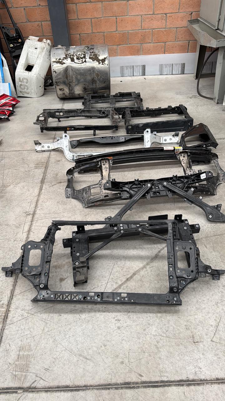 Conjunto de marcos/soportes de radiador usados (metal y polímero), ideales para refacción o reciclaje. Se venden tal cual en la foto; no incluyen faros, radiadores, ventiladores ni sensores.