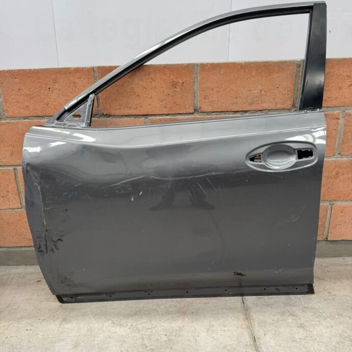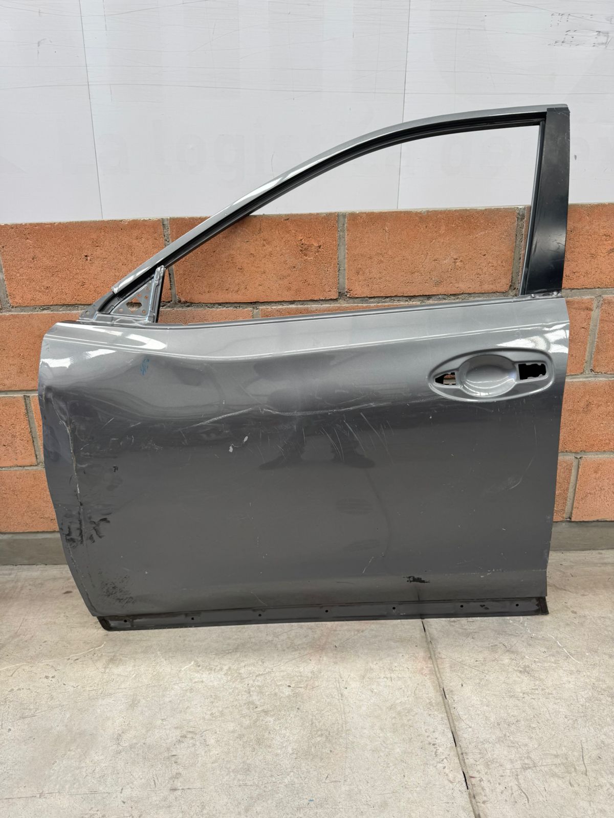 Puerta delantera derecha de automóvil en lámina/acero, color gris oscuro metalizado, de aplicación genérica para el parque automotor. Marca, modelo y año específicos no verificados; el comprador debe validar compatibilidad antes de ofertar.